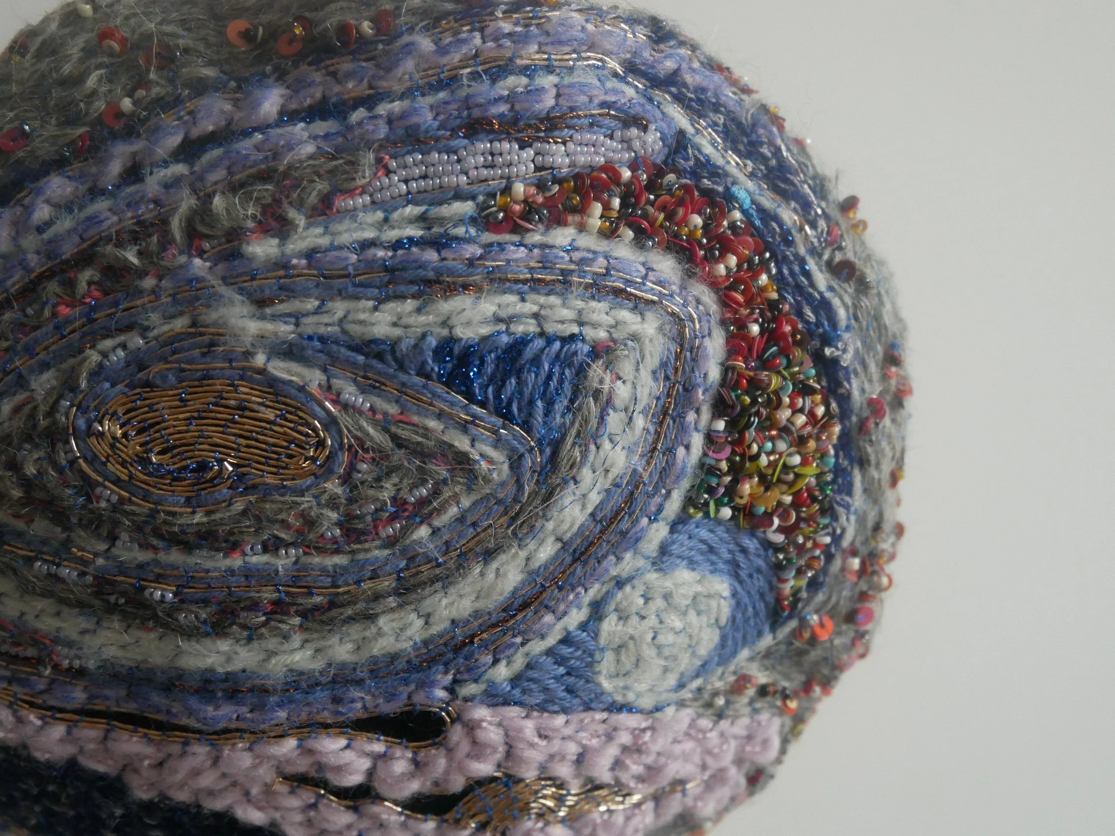 Artiste autodidacte, mon travail artistique est instinctif et organique. Je teste les matières textiles, laisse libre cours à mon envie du moment. Le fil et l’aiguille deviennent obsessionnels. Ce travail lent et précis m’apaise et me permet d’entrer dans un état méditatif parce que répétitif. L’acte de broder devient une nécessité quotidienne.