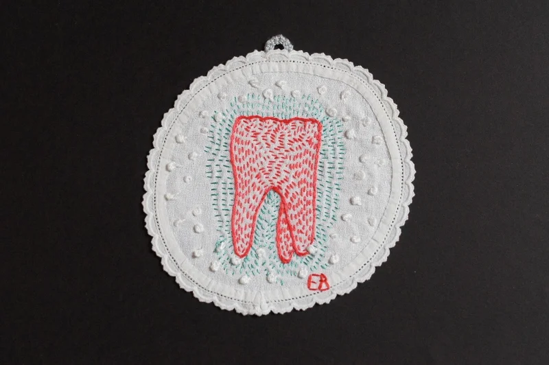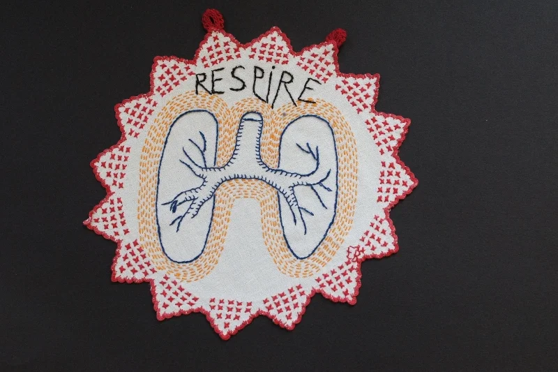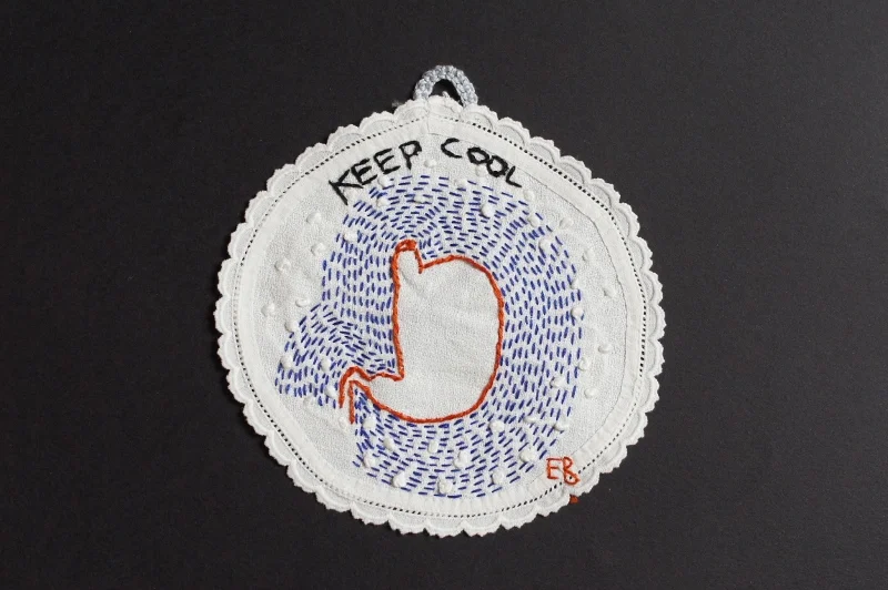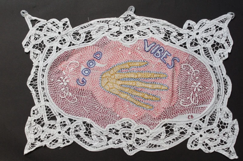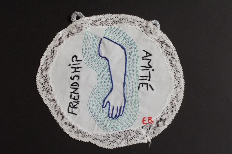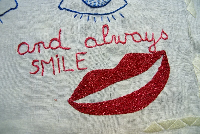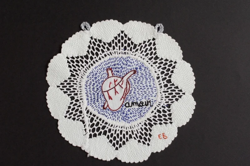 Petite série de messages associés à un organe, brodés sur des mouchoirs, des serviettes de table, des petits napperons.